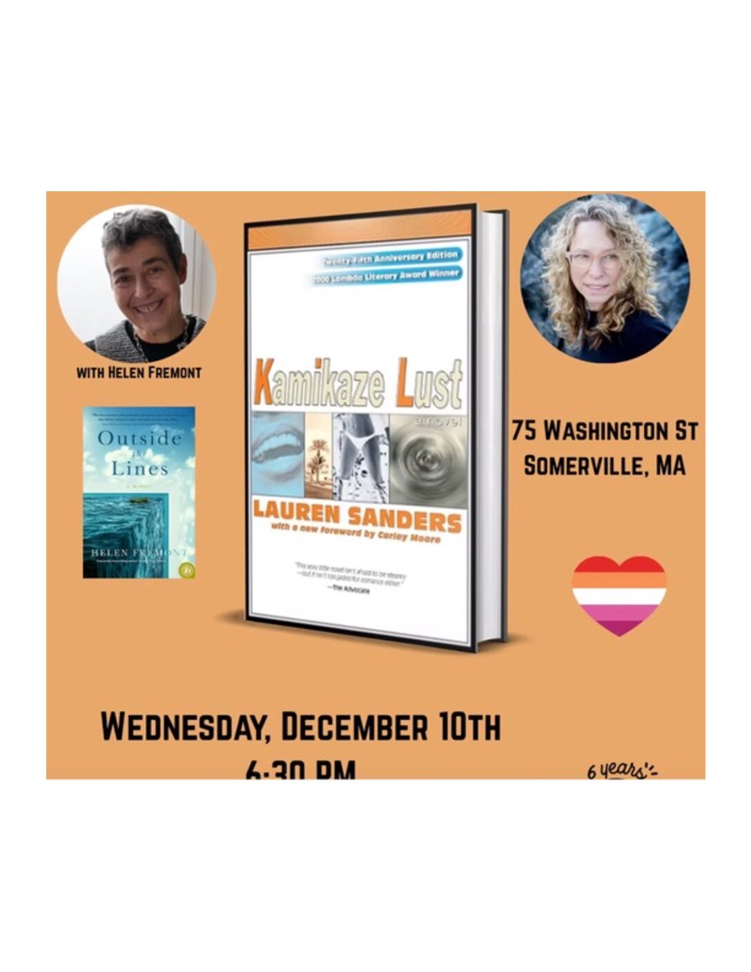 Join All She Wrote Books on Wednesday, December 10th at 6:30pm, as they host author Lauren Sanders in conversation with Helen Fremont! They will discuss Sanders’ novel Kamikaze Lust, 2000 Lambda Literary Award Winner, an electrifying ride through the spectacle of life and death in millennial America.